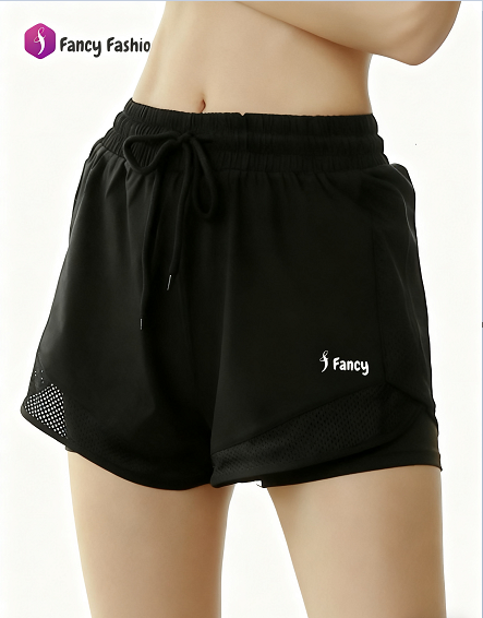 Fancy Women’s 2-in-1 Running Shorts Quick Dry Mesh Panels Elastic Waist with Drawstring for Gym Yoga
