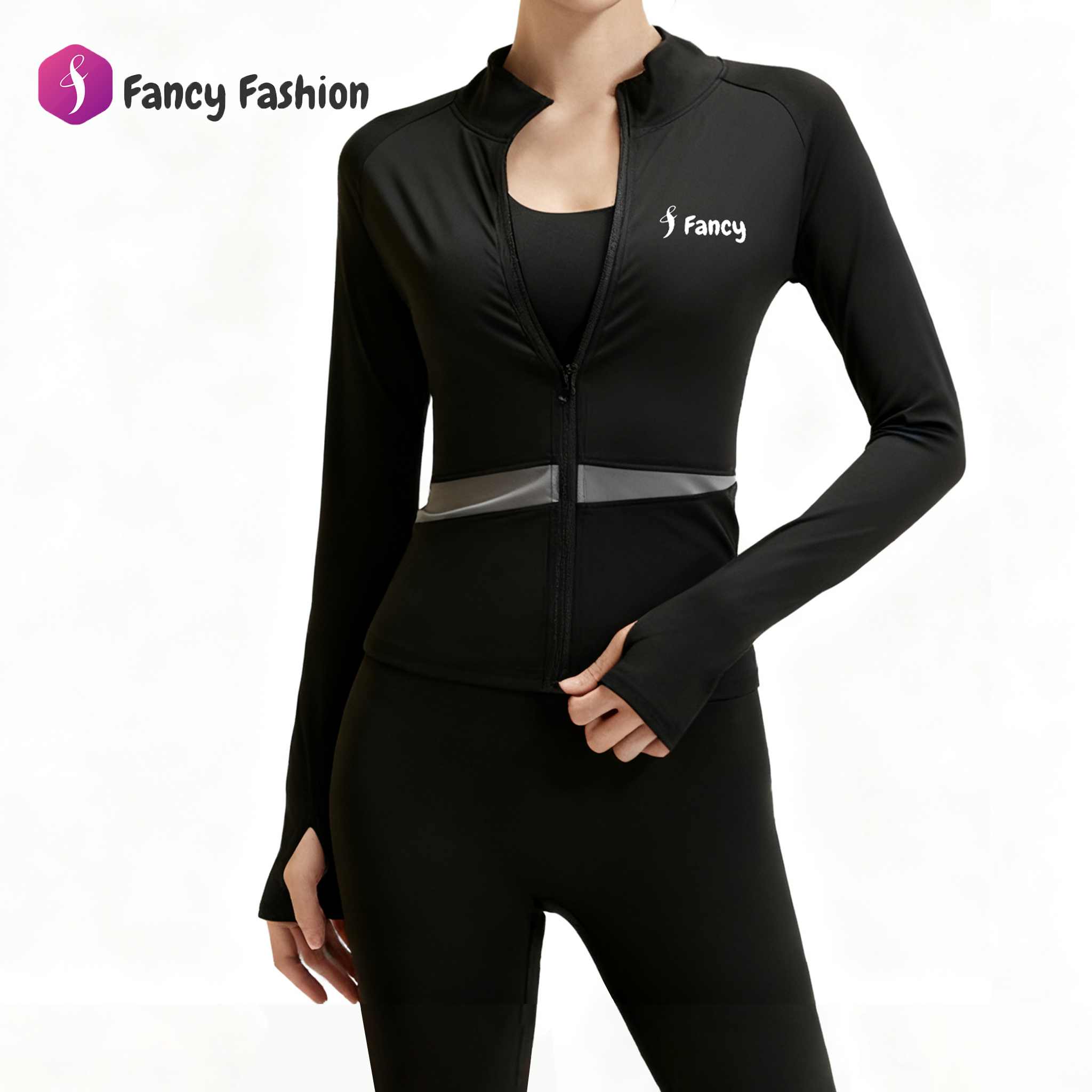 Fancy Women’s Slim Fit Yoga Jacket Full Zip Long Sleeve Quick Dry for Gym Workout & Activewear